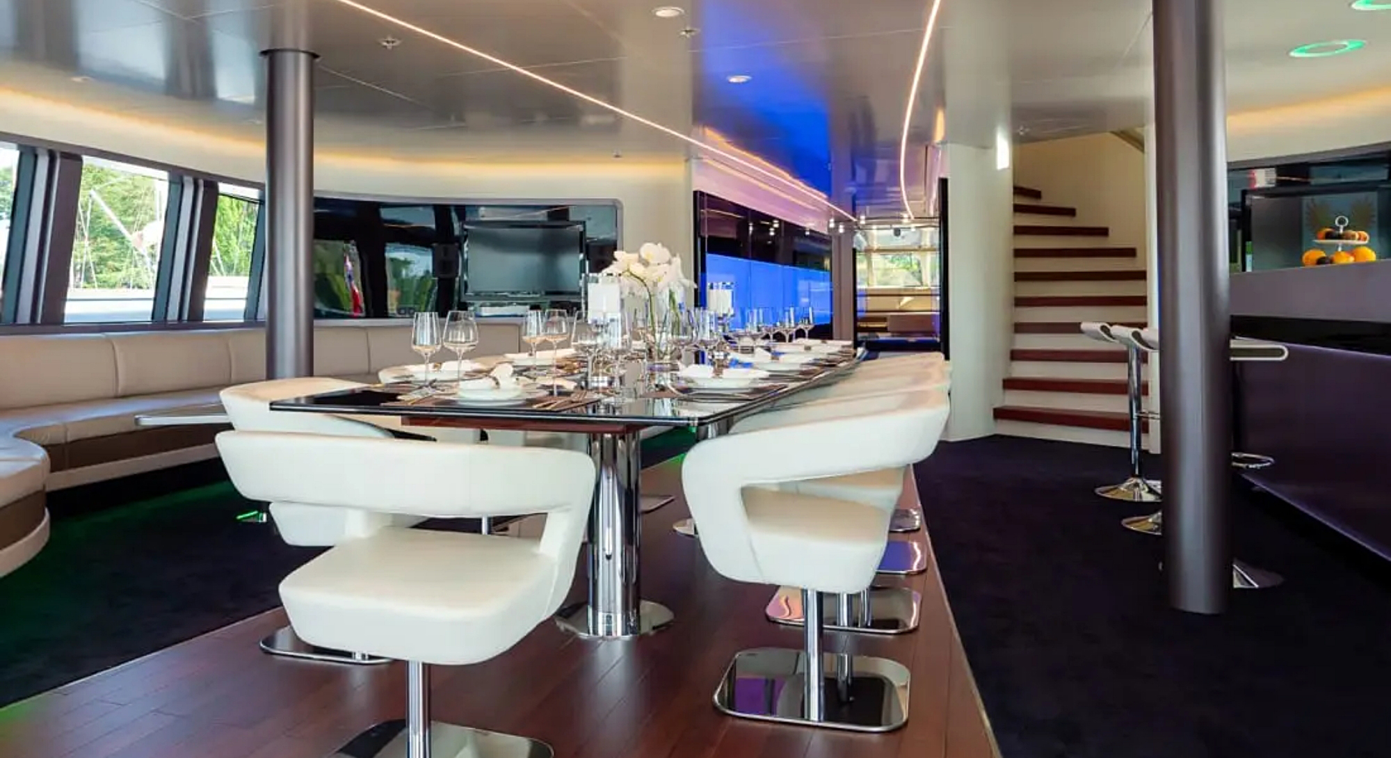 • the Royal Falcon One yacht dining area