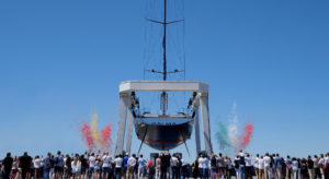 To keep her from appearing overwhelming, Zuccon International Project balanced her proportions, with further input from Piero Lissoni, the interior designer. While many megayacht build and design teams talk about seamless interiors and exteriors, the Sanlorenzo 44X-Space takes the concept further. “It has become an almost completely glass boat,” Lissoni says. Many non-structural walls both inside and outside are glass and therefore fully transparent. In fact, “Some of the cabins no longer even have portholes, but glass walls,” he explains. “The interior has forced its hand on the exterior, and the exterior has been so elastic and so well designed that the interior almost fits in in a totally natural way.”