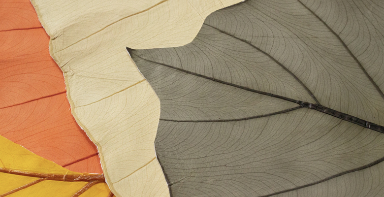 Silverlining is a fan of leaf leather—plant leaves that transform into a truly leather-like material—for a few reasons. It eliminates animal products for customers who want to avoid them, for instance. Secondly, a variety of leaves lend themselves well to the process. This particular example is of Elephant Ear plant leaves. “The material company tans the leaves using an exclusive process which is entirely heavy-metals-free,” Lloyd-Davis says. The process additionally uses reclaimed water and natural fertilizer, he continues.